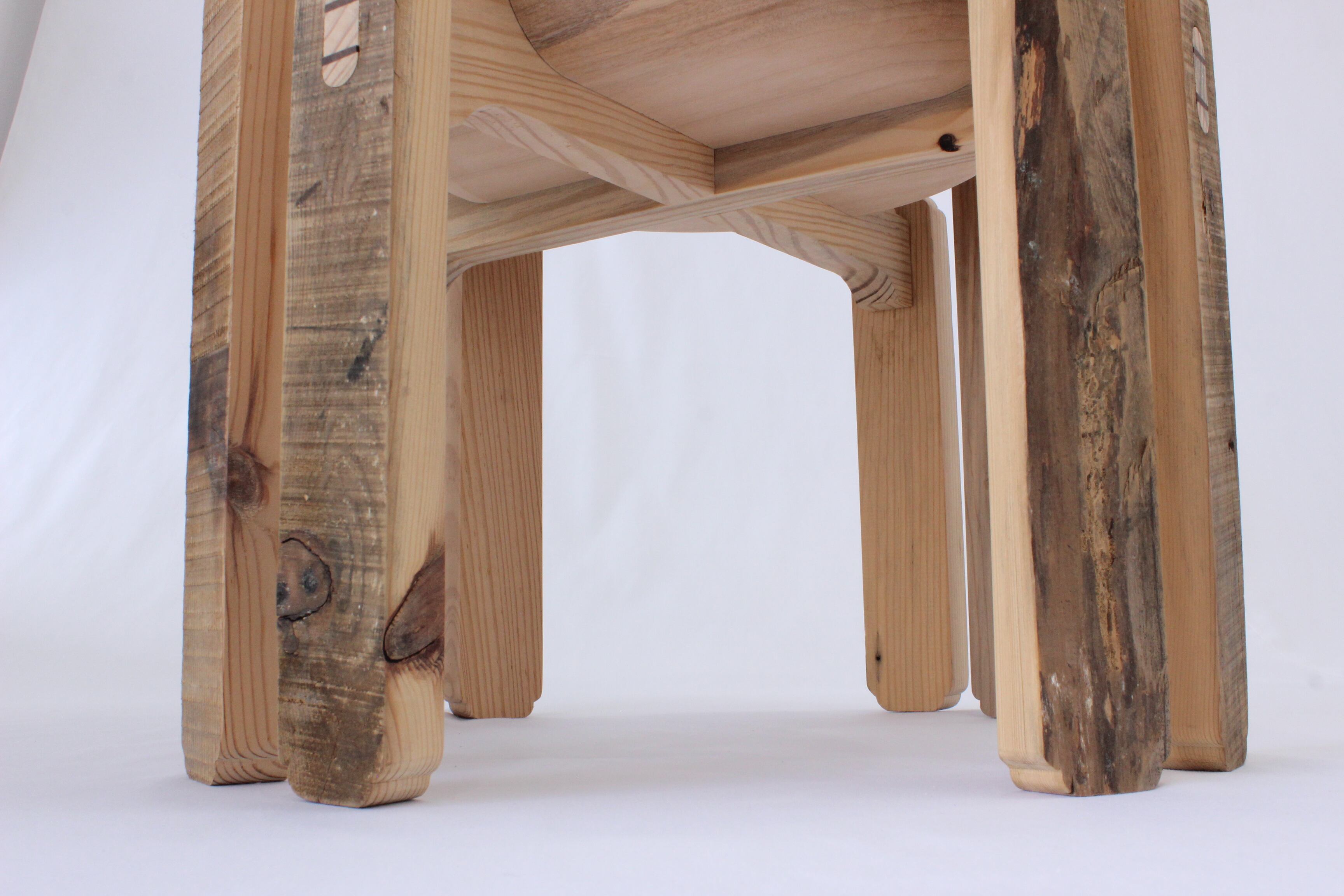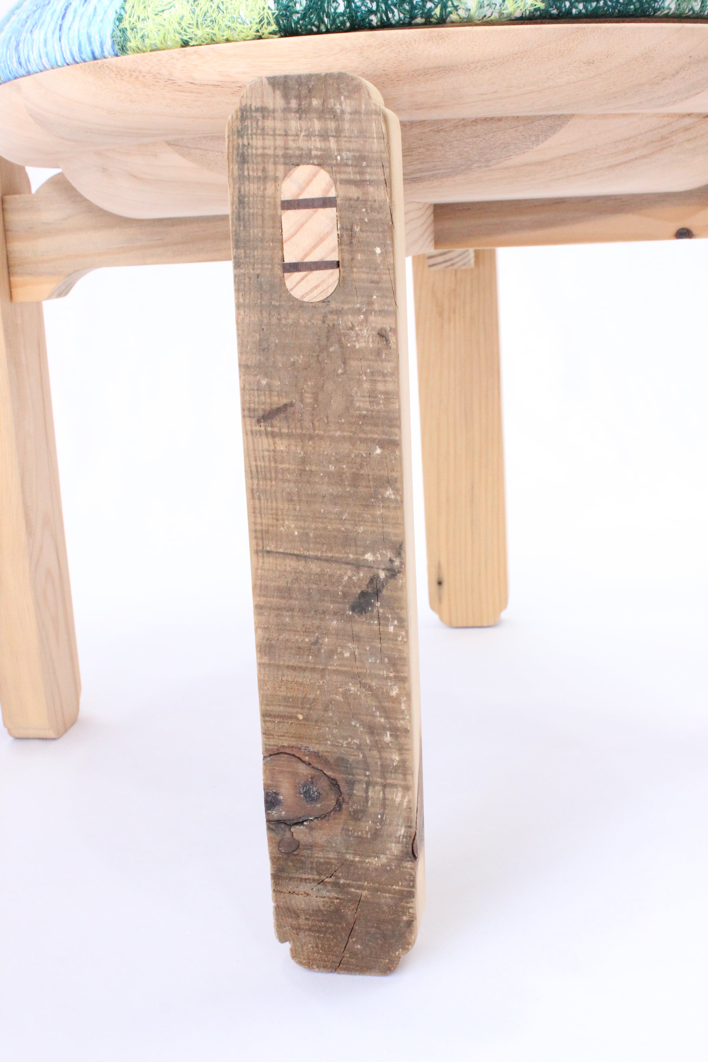 このスツールに使われている木材は、能登半島地震で倒壊した建物の一部なのです。