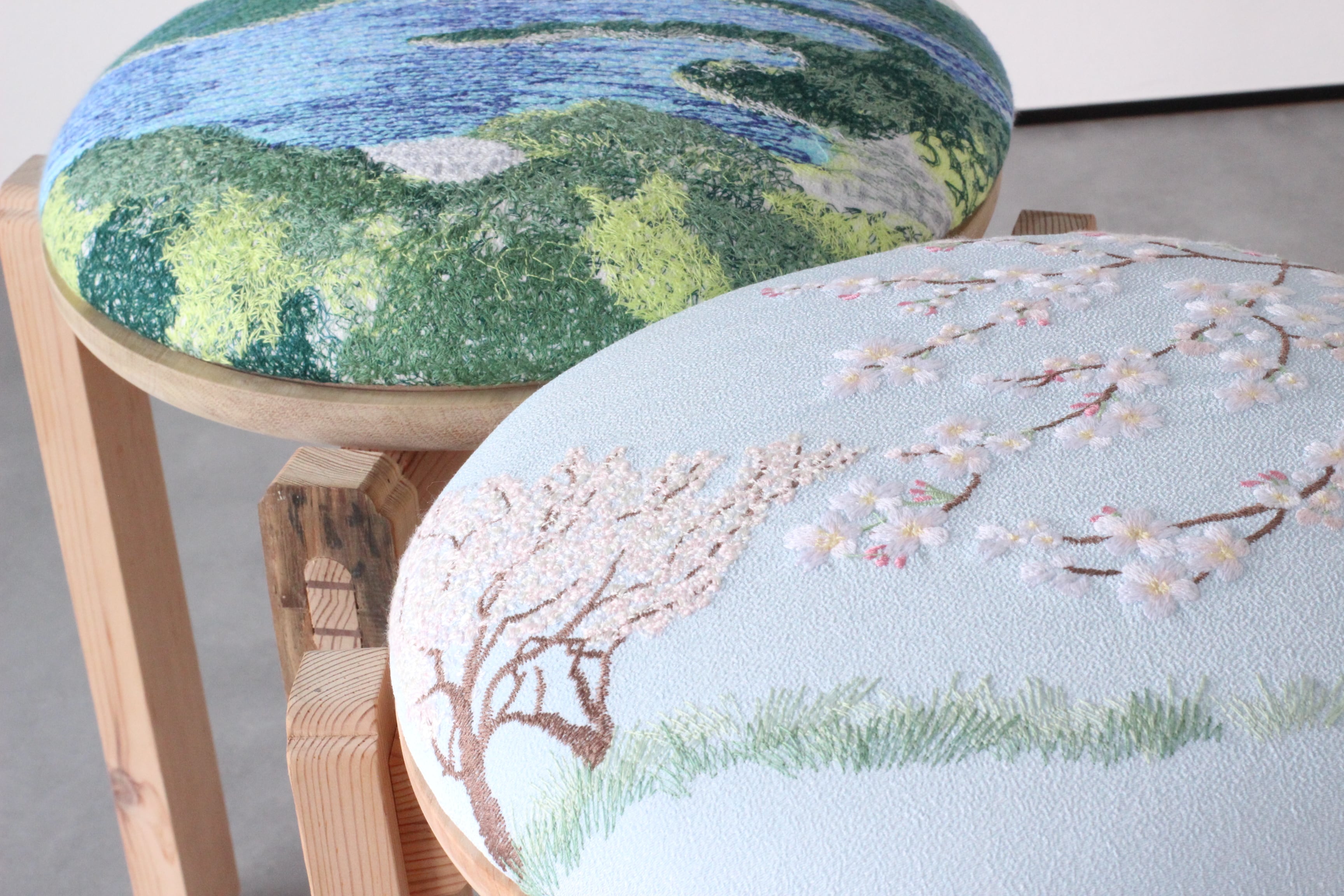 その断片を糸に変換し、座面に縫いとめていくことで、記憶が具体的な模様として現れていきます。