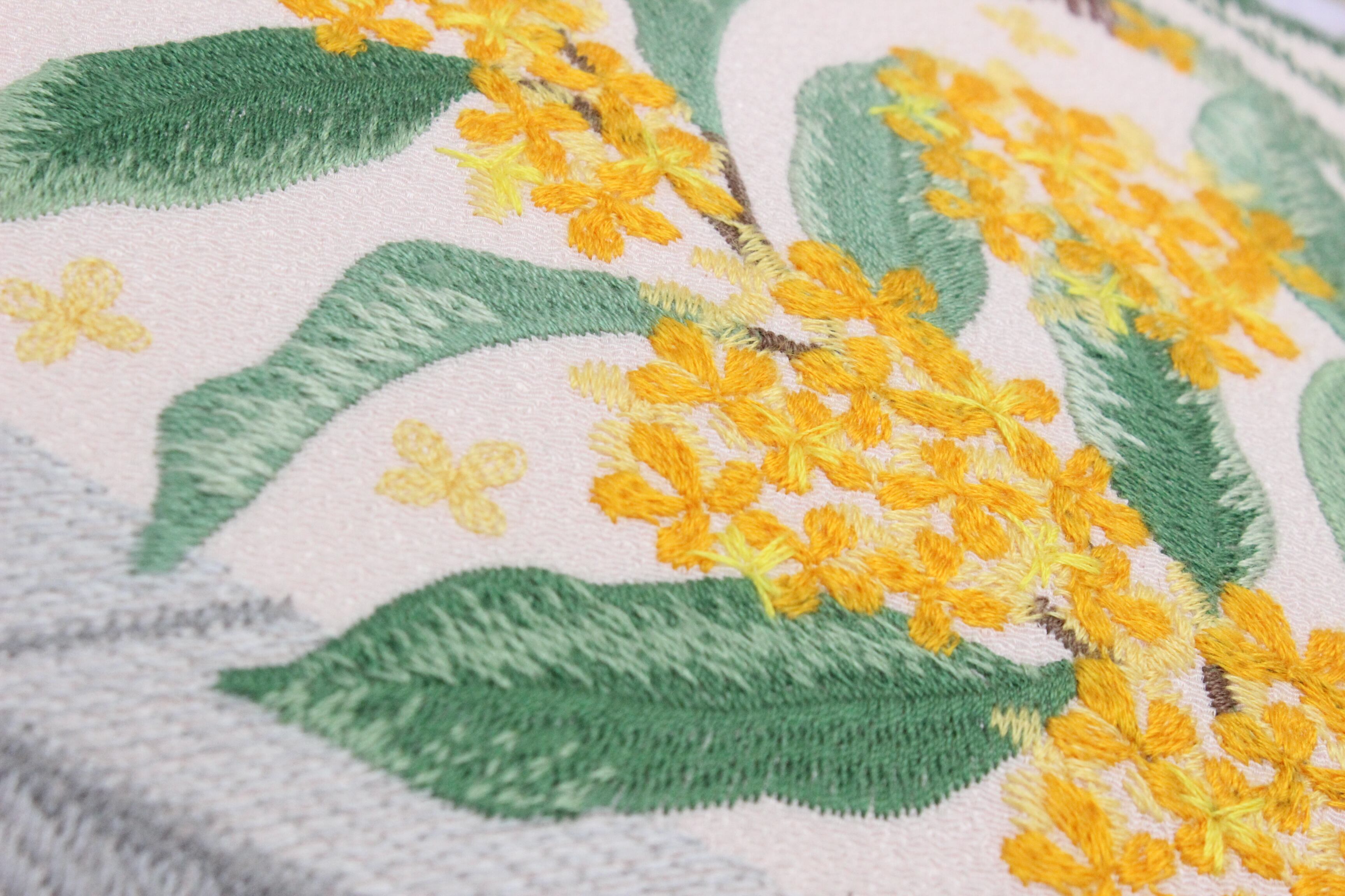 刺繍の魅力は、平面にとどまらない質感です。糸の立体感や光の当たり方によって、模様が呼吸をするように変化します。